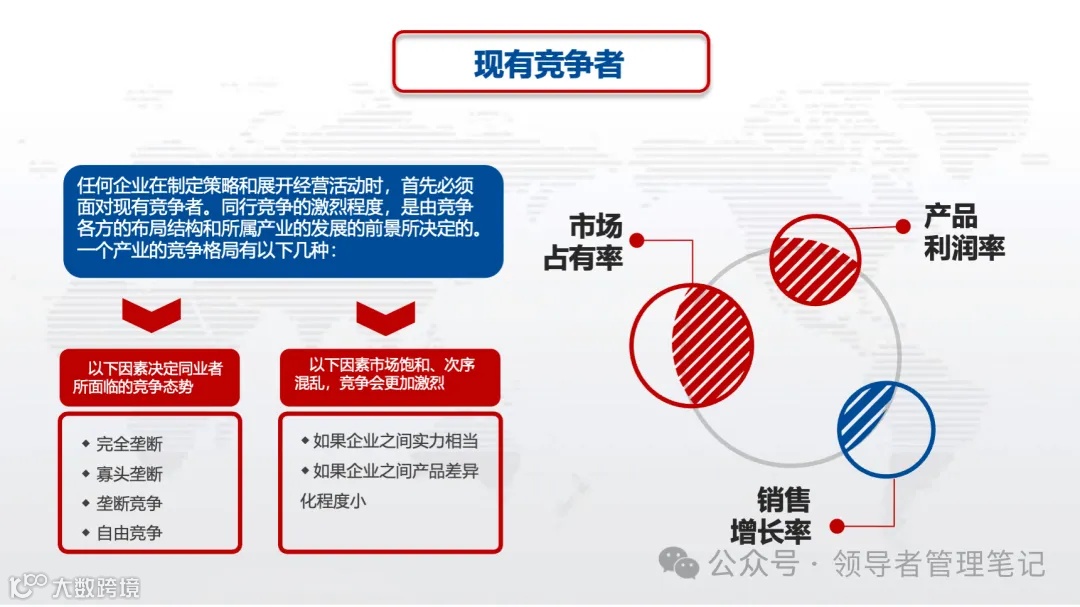 文档提到“现有竞争者”的竞争格局分为4类,直接影响竞争激烈程度: