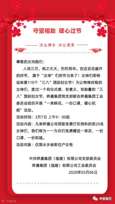 俗话说:远亲不如近邻。在这特殊的时期,特别的日子里,晔晨党支部联合工会开展“一束鲜花,一份口罩,暖心抗疫”活动,为前来领取免费打印资料的前20名女神们,一一送上这份特别的礼物。看着一双双幸福的眼睛,感受到这最美三月的暖意!