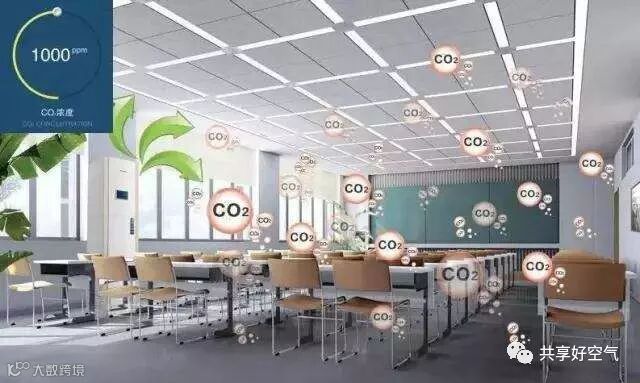 教室人员密集,空气流通速度缓慢,二氧化碳被呼出后容易集聚,使空气当中的氧气含量下降,二氧化碳含量显著提升,而这容易造成大脑缺氧、呼吸困难等问题,影响学生身体健康和学习效率。