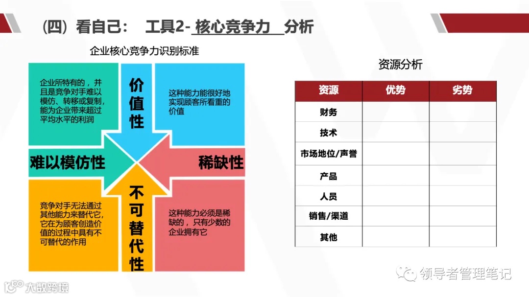 2. 按价值性、稀缺性、难以模仿性、不可替代性四标准识别核心能力 |