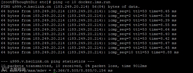 ping -c 10 docker.1ms.run