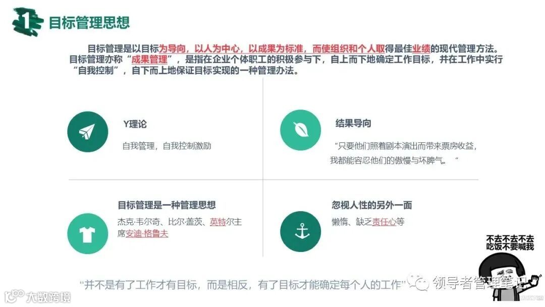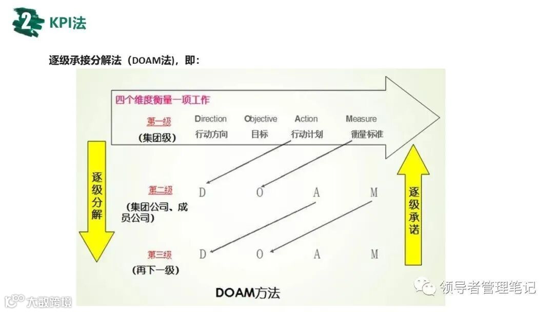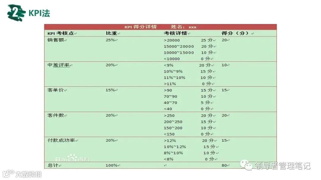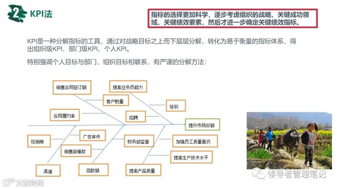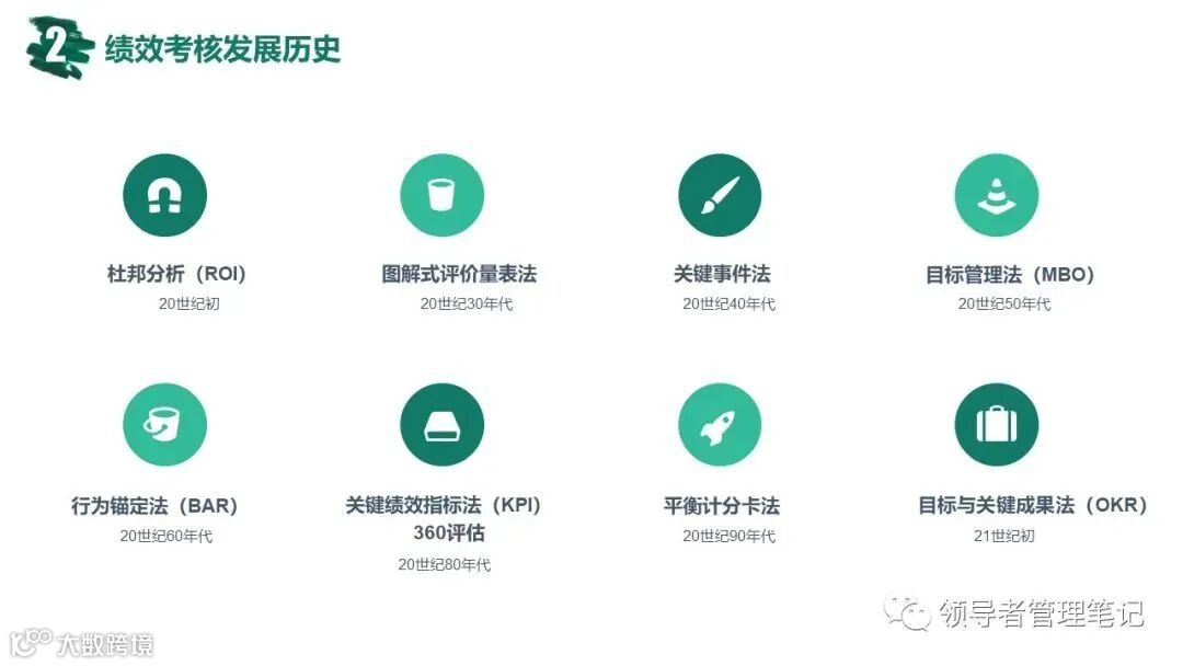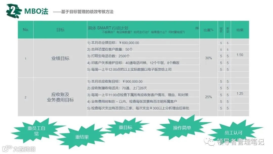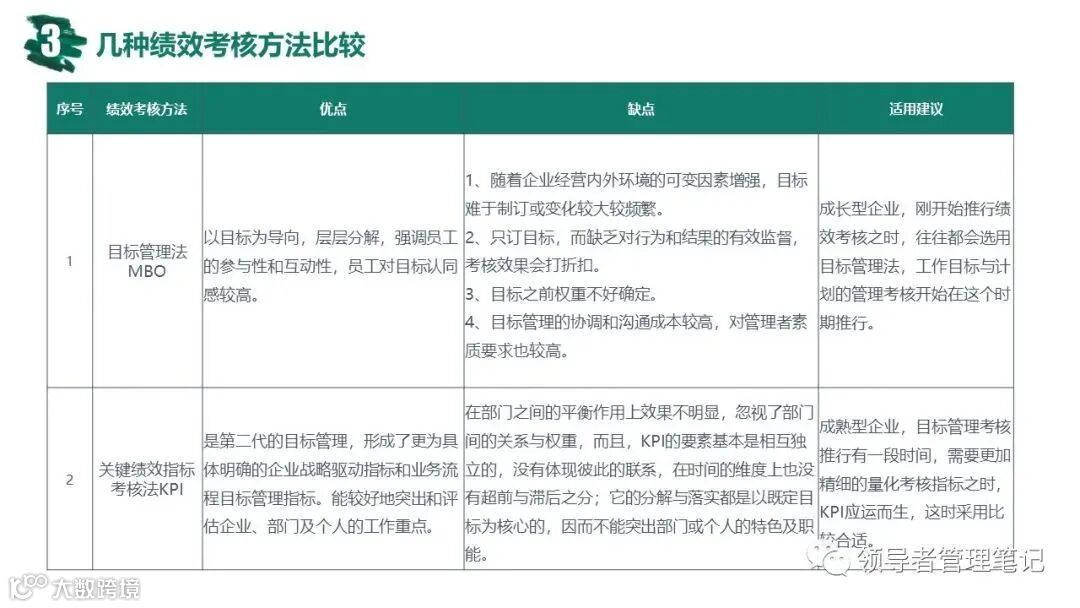 ►领导者说:★常用的绩效管理方法有:360度综合考核、KPI绩效考核、基于bsc的绩效考核(平衡计分卡)、MB0目标管理法;企业管理的核心是战略管理,战略管理的核心是人力资源管理,人力资源管理的核心是绩效管理。《常见绩效考核工具:MBO KPI BSC OKR.pptx》下载见文末