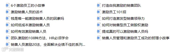这套资料一共5大模块,覆盖销售员工激励的制度、薪酬、绩效、培训和技巧,有模板,有案例。