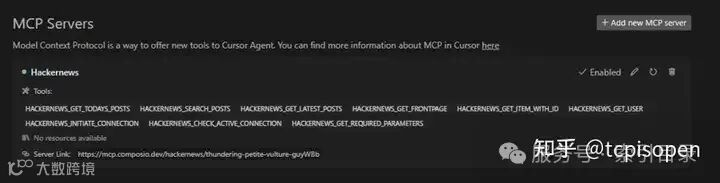 现在是时候将光标集成到其中了。目前,我们将使用 Hackernews MCP 服务器。