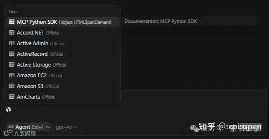 想象一下,你是一个新手,你想要改善与官方 MCP repo 中的Python SDK 文档相关的光标上下文。