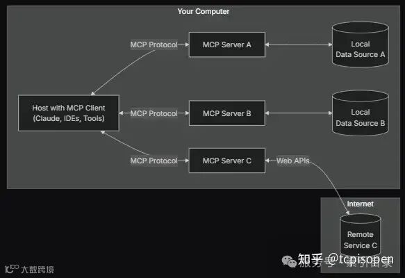 从本质上讲,MCP 遵循客户端-服务器架构,其中主机应用程序可以连接到多个服务器。