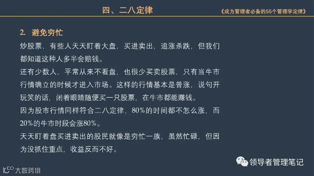 重要消息:微信公众号又改版了,即便我每天都按时发文,你也可能收不到信息,甚至可能永久失联。唯一的办法就是把“领导者管理笔记”公号设置星标☆,这样才能每天照常收到文章。加(微信:New-leaders)进管理资料分享群