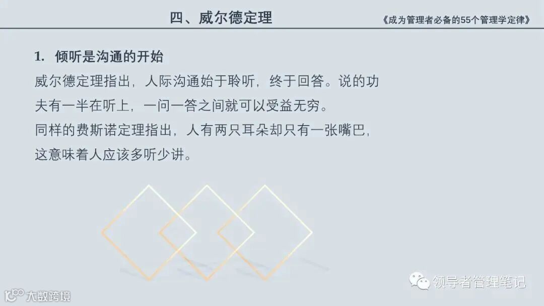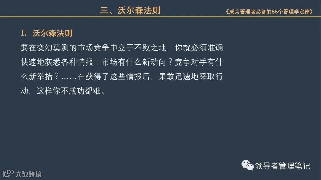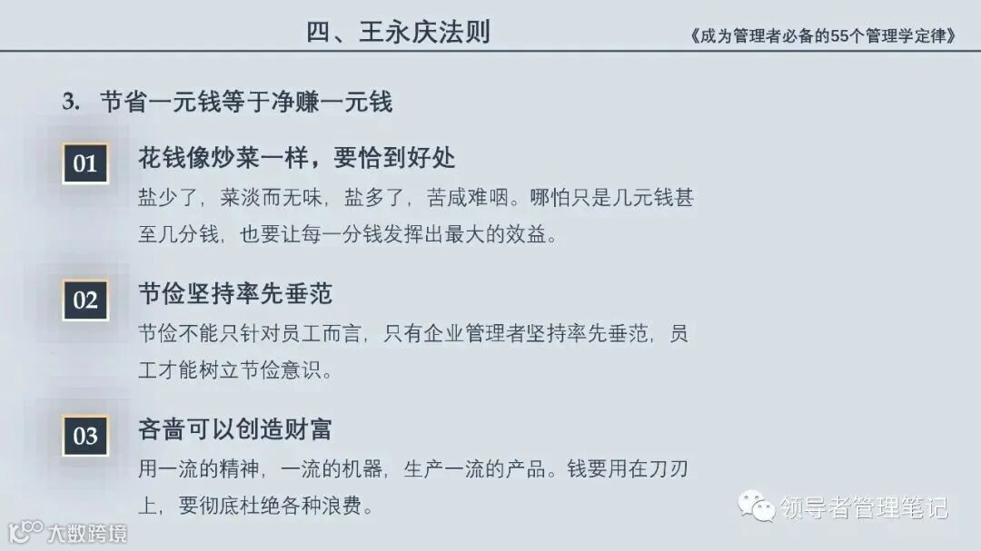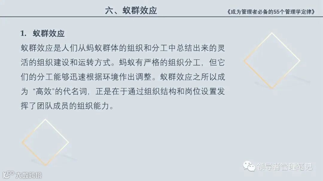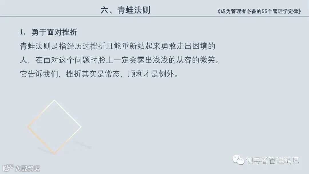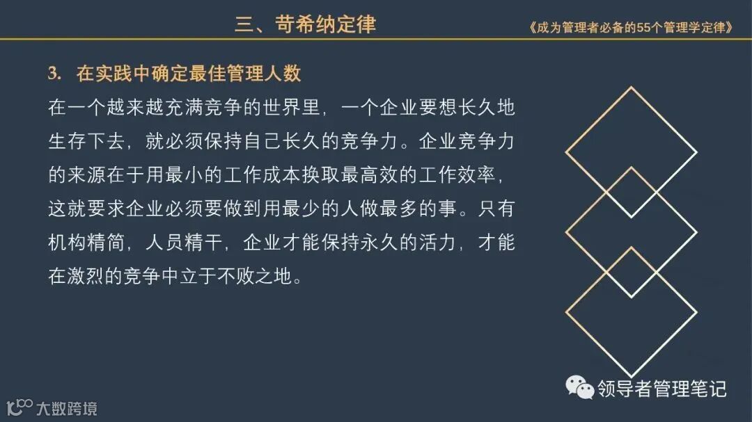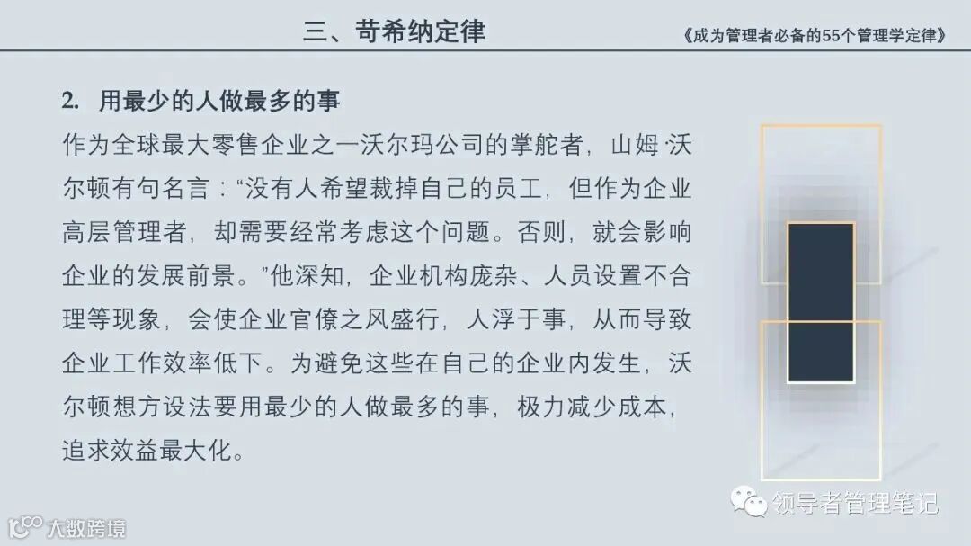 55个“管理学定律”包括:职场选人用人育人之道,以人为本的人性化管理,灵活有效的激励手段,沟通是管理的浓缩崇尚团队合作精神,决策是管理的心脏,创新与竞争是决胜之宝,成也细节,败也细节。