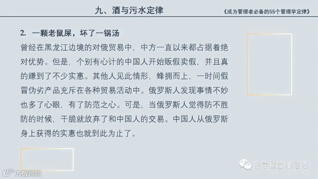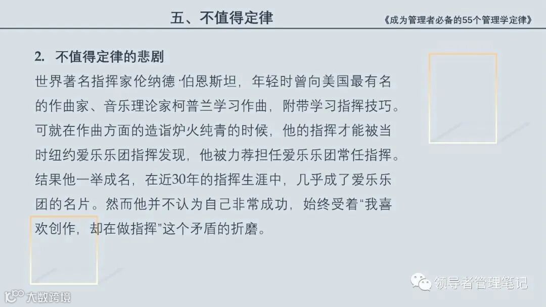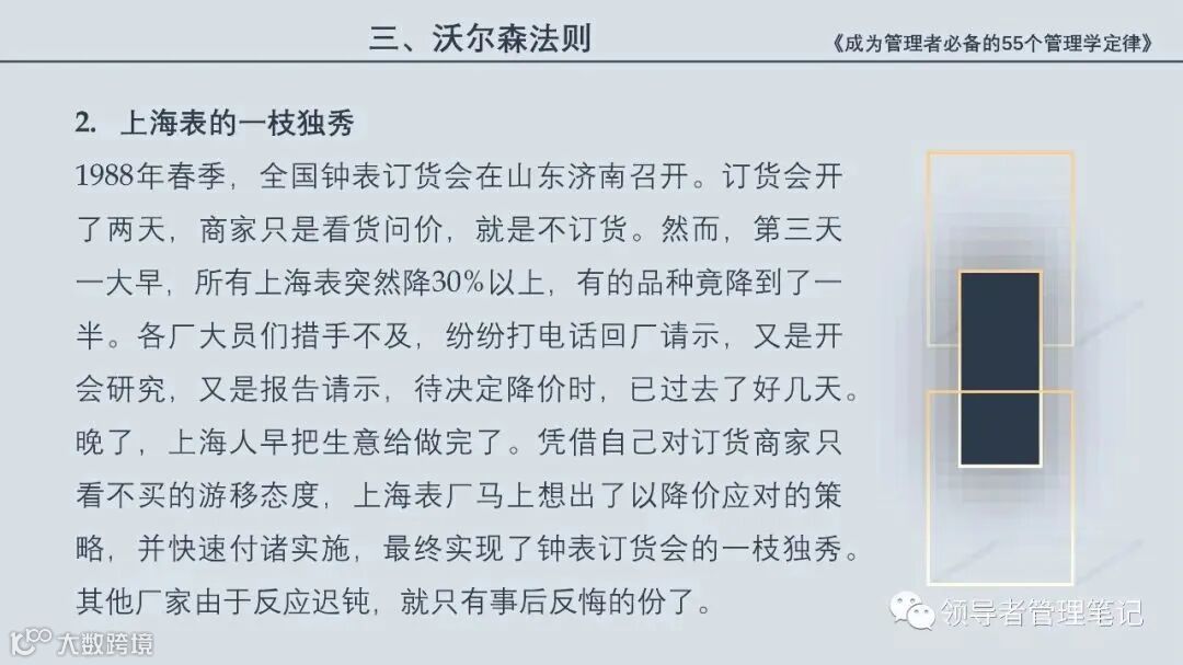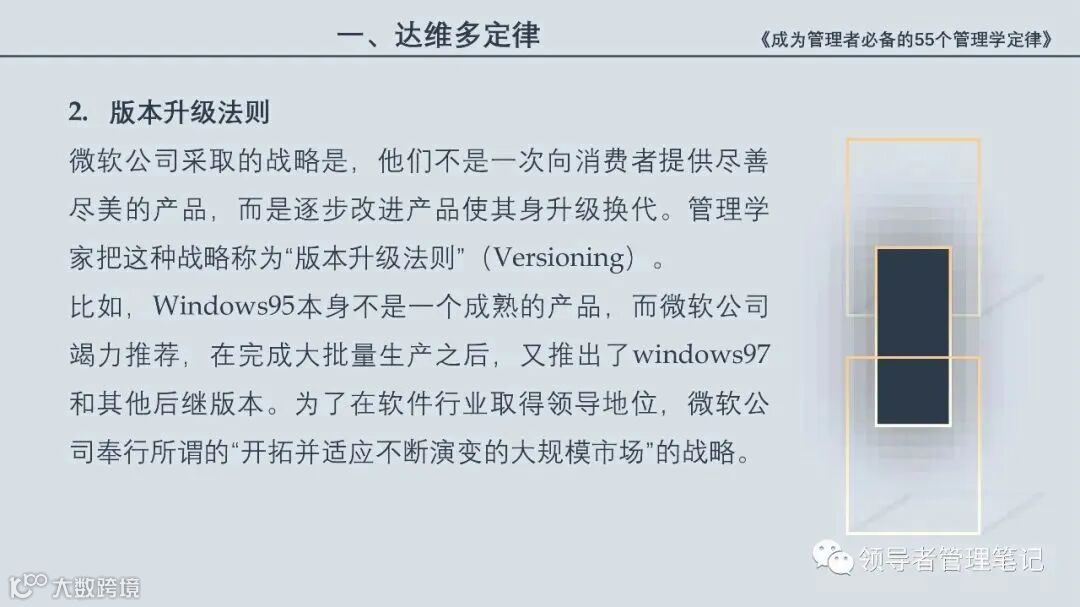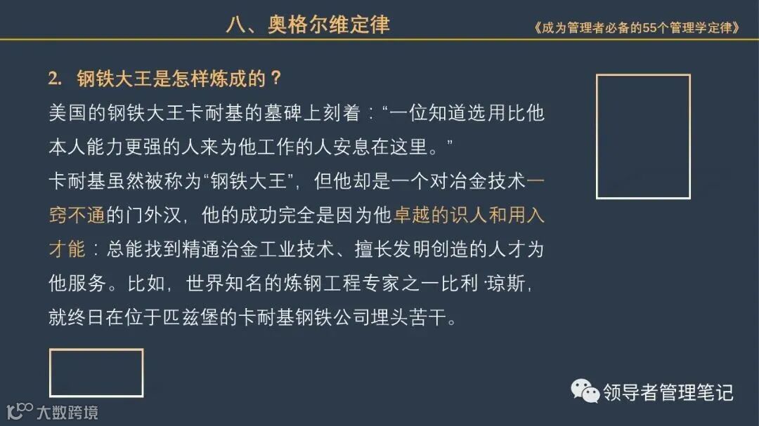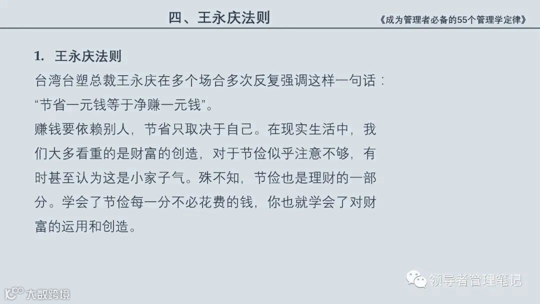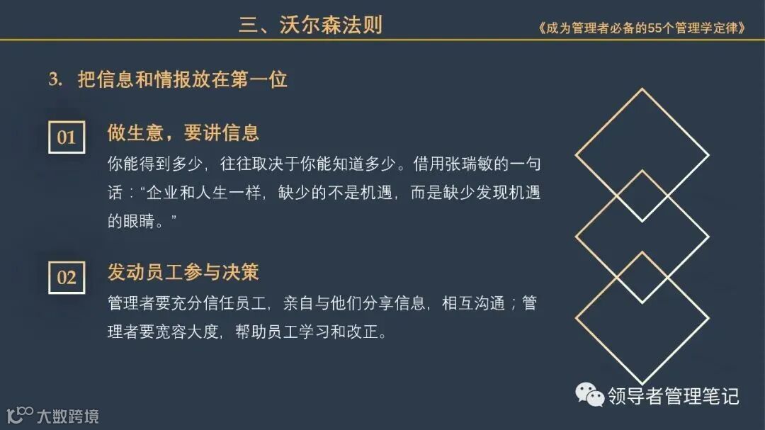 55个“管理学定律”包括:职场选人用人育人之道,以人为本的人性化管理,灵活有效的激励手段,沟通是管理的浓缩崇尚团队合作精神,决策是管理的心脏,创新与竞争是决胜之宝,成也细节,败也细节。