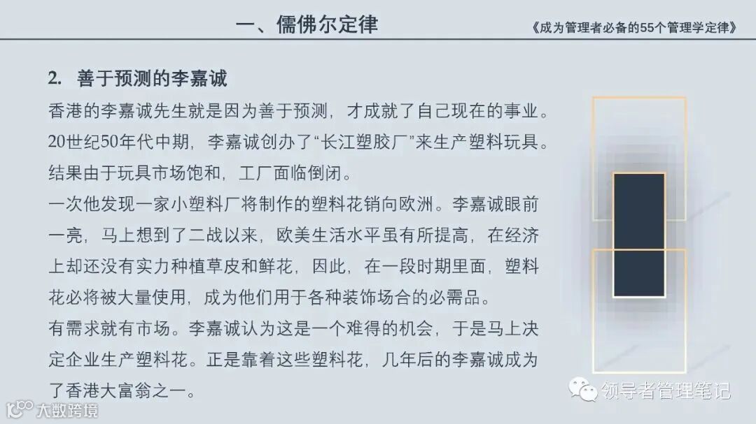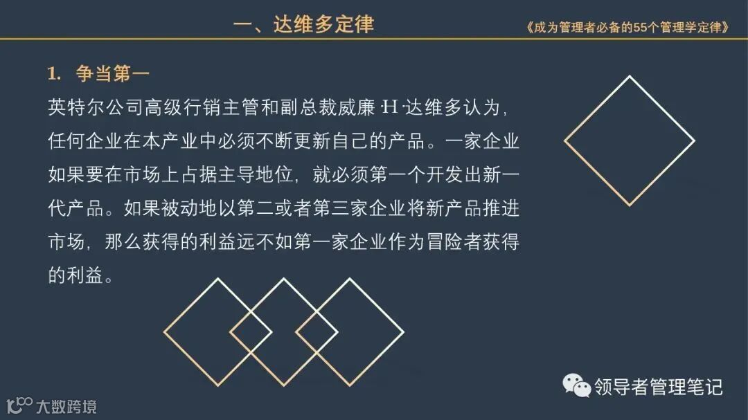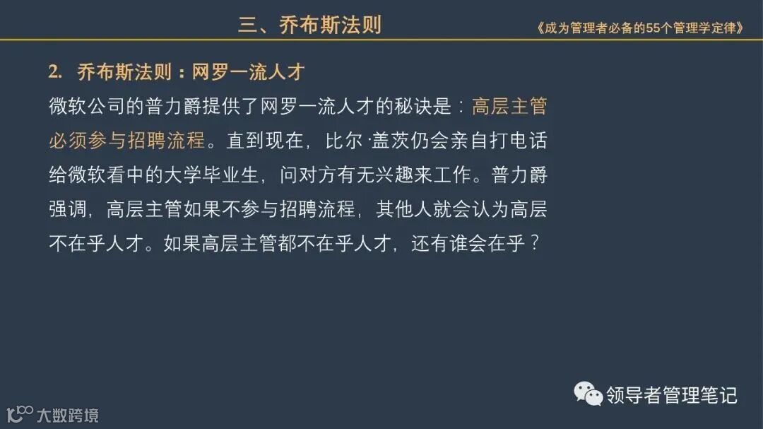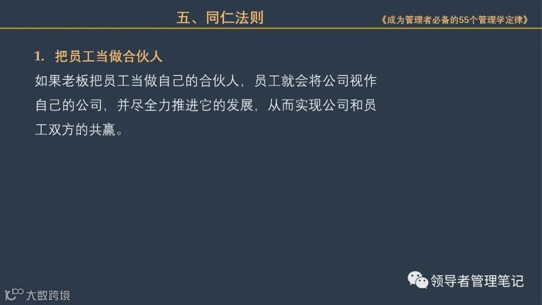 《领导者管理笔记》筹备高端企业家实名付费社群“峯顶会:一号位”。面向:企业董事长/CEO/总经理/总裁、联合创始人/合伙人、COO/CTO/CMO等、事业部(群)总裁/总经理、董事(企业年营收不低于1000万)。定位:资源链接、管理&领导力交流、等价人脉建设、业务合作、思维碰撞。有兴趣加微信:New-leaders ,备注“一号位”。