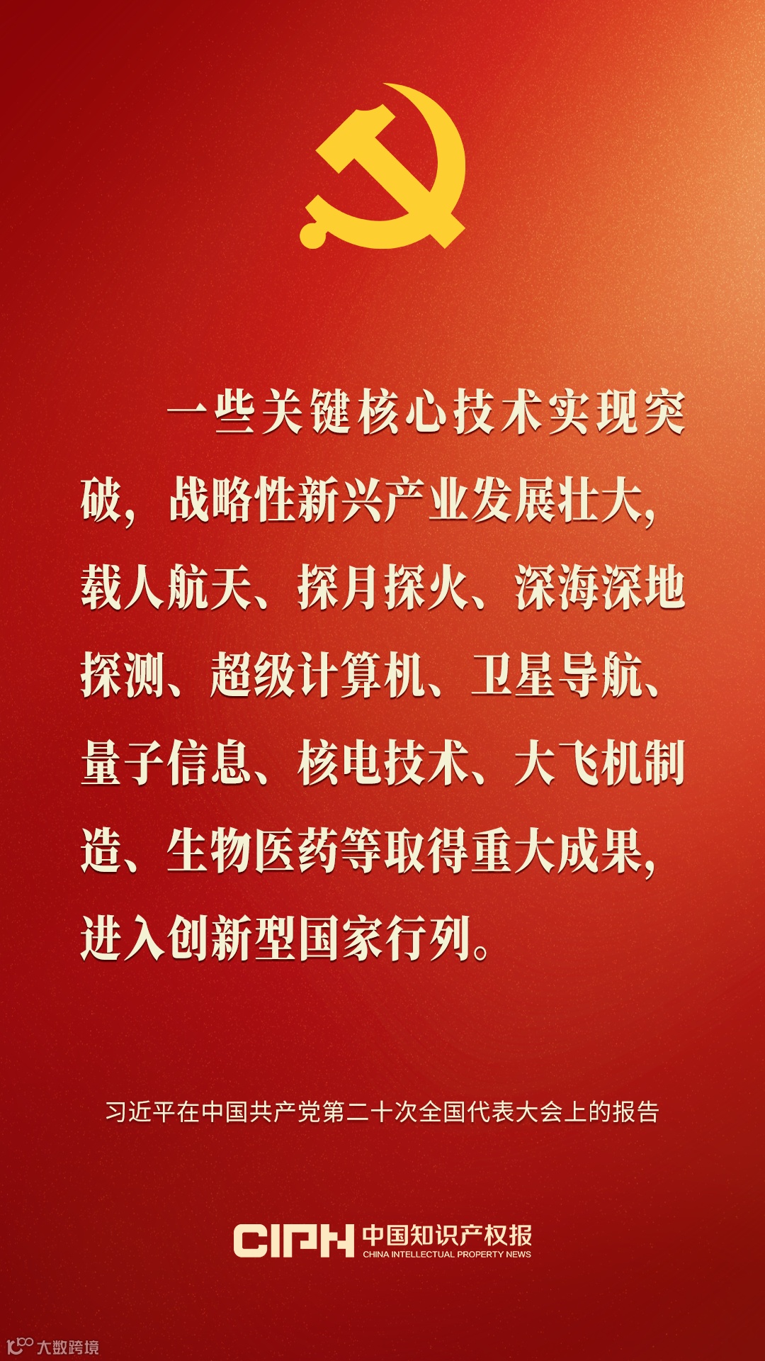 (文字摘编自中国共产党第二十次全国代表大会开幕会文字实录)