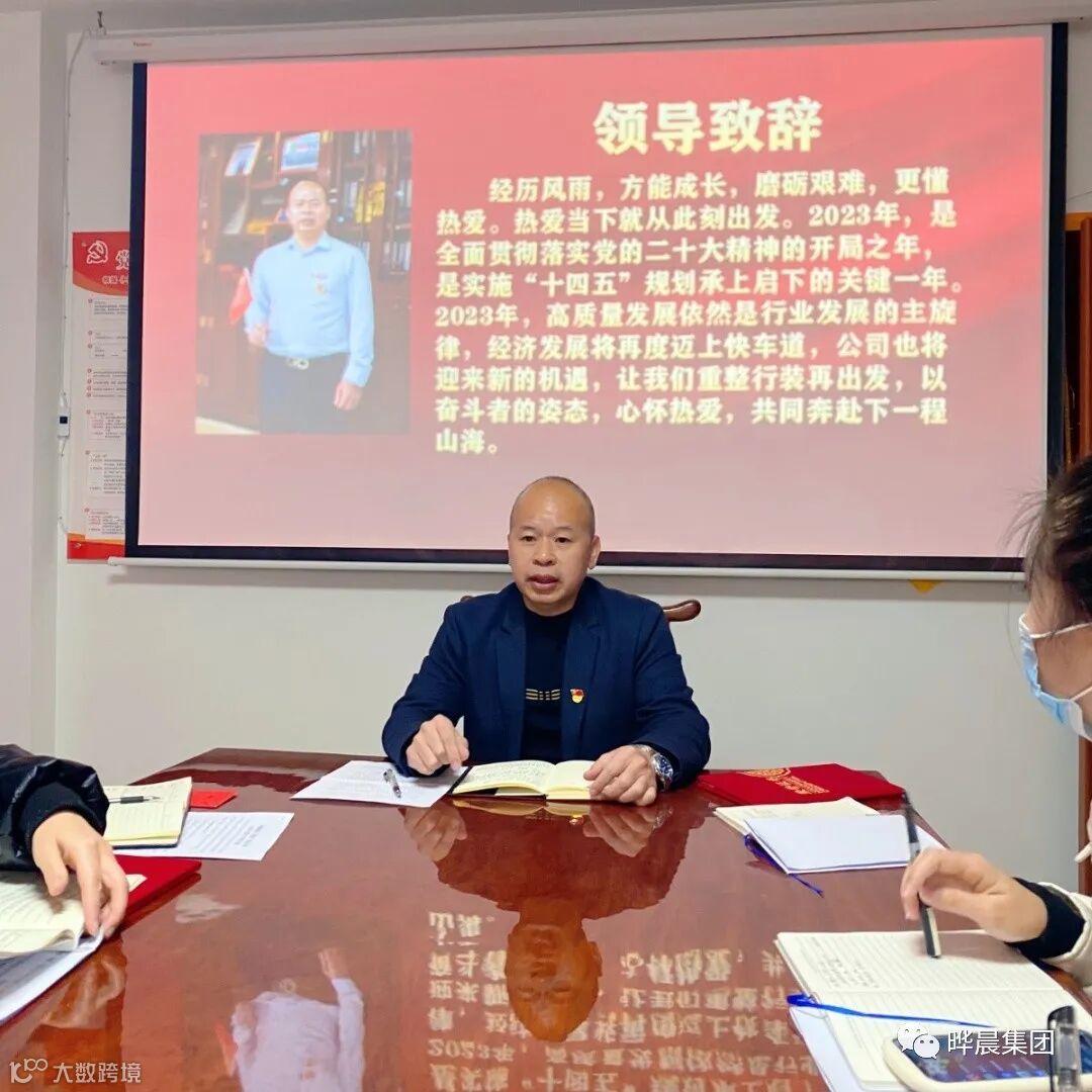 1月18日下午,寒冷冬日,暖阳高照,晔晨集团2022年度总结表彰暨2023年工作会在公司党员活动室召开。内容包含部门负责人及员工年度工作报告、学习强国“APP”年度积分前三名表彰及党支部书记、董事长林玉镇总结发言三个环节,会议肯定了成绩,总结了不足,提出了改进方案及期望,树立了新的目标。让我们以坚定的信心开拓进取,相信在新的一年,一定会取得更大的成绩。