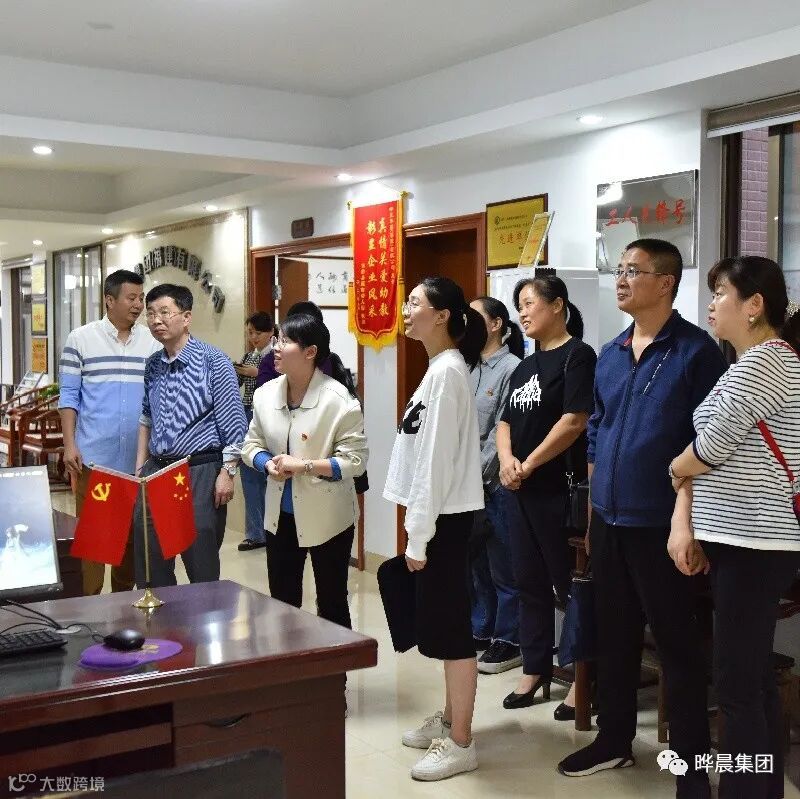 参观完毕,领导们一同观看了晔晨集团党建工作建设微视频并展开亲切会谈。