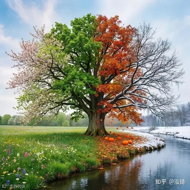 prompt = "A photo of an oak tree experiencing every season"