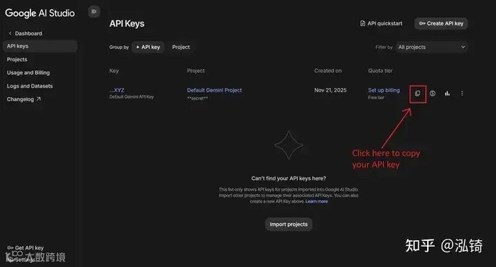 打开API 密钥管理界面,点击“复制”图标复制您的 API 密钥。