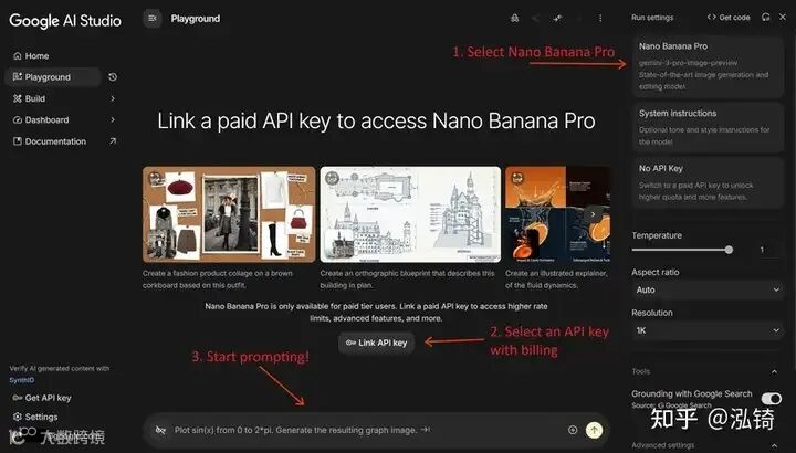 虽然最终用户可以通过Gemini 应用访问 Nano Banana Pro ,但对于开发者而言,进行原型设计和测试的最佳环境是Google AI Studio。AI Studio 是一个实验平台,开发者可以在编写任何代码之前体验所有可用的 AI 模型,它也是使用 Gemini API 进行构建的入口点。