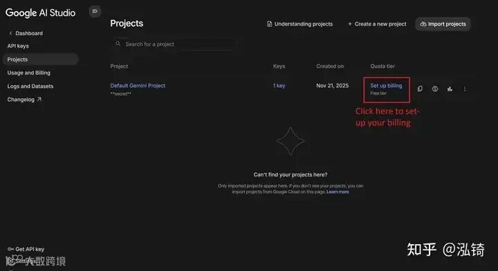 由于 Nano Banana Pro 没有免费套餐,您必须在 Google Cloud 项目中启用结算功能。
