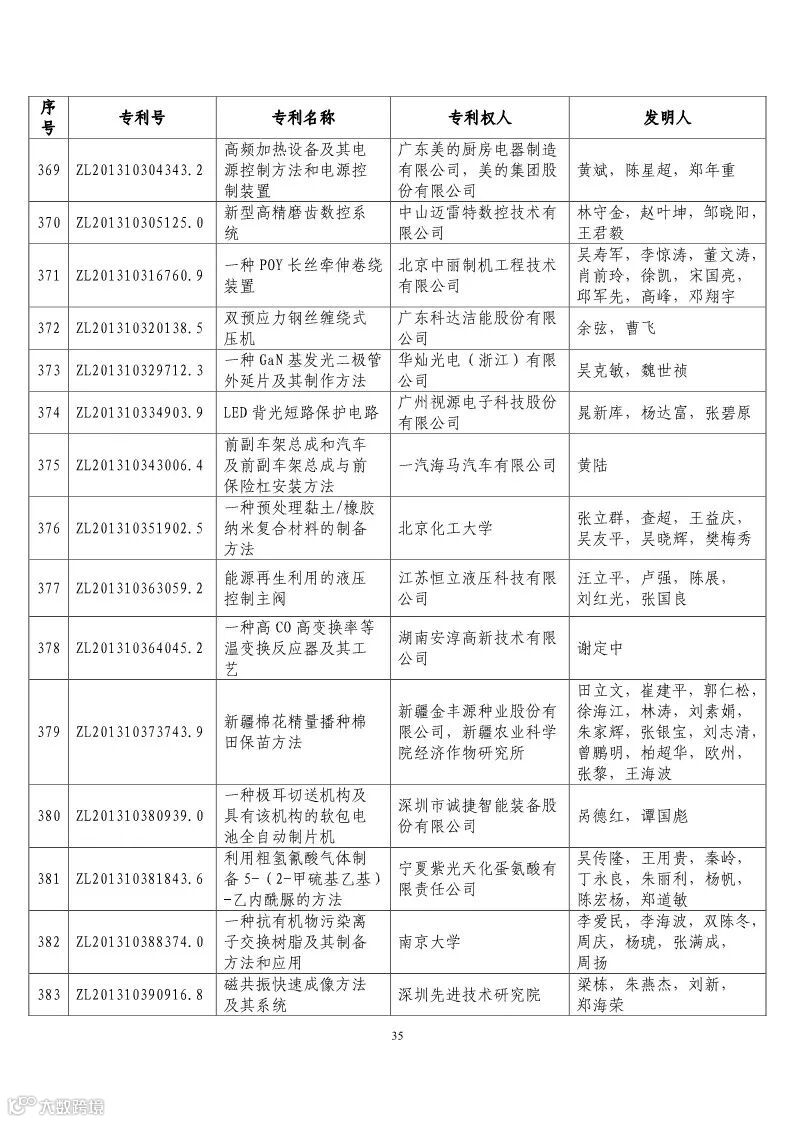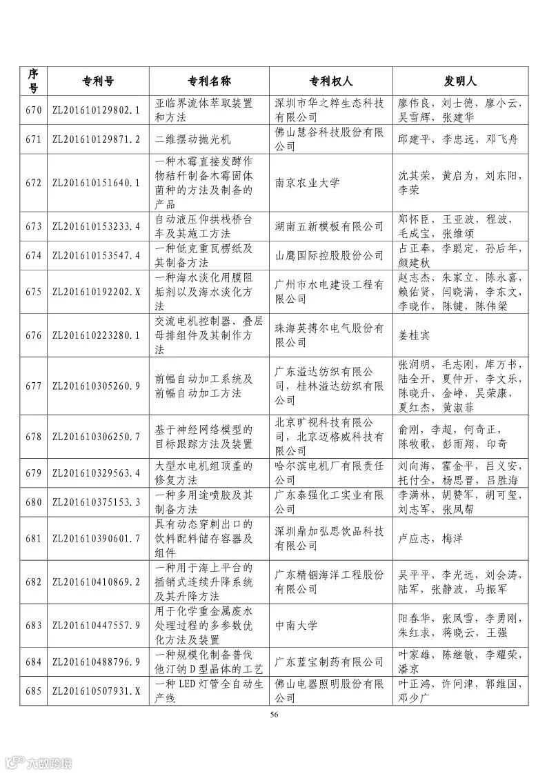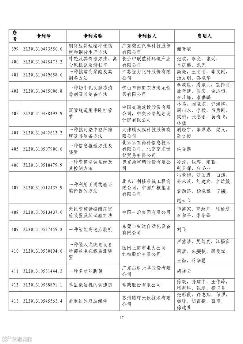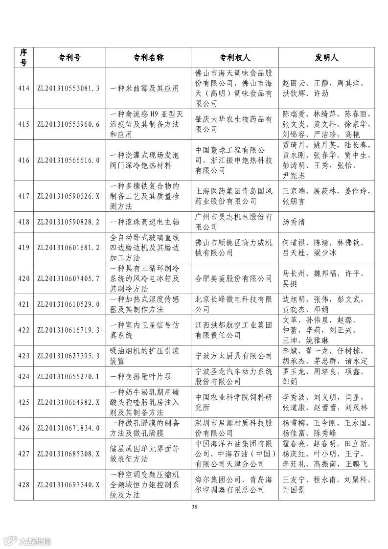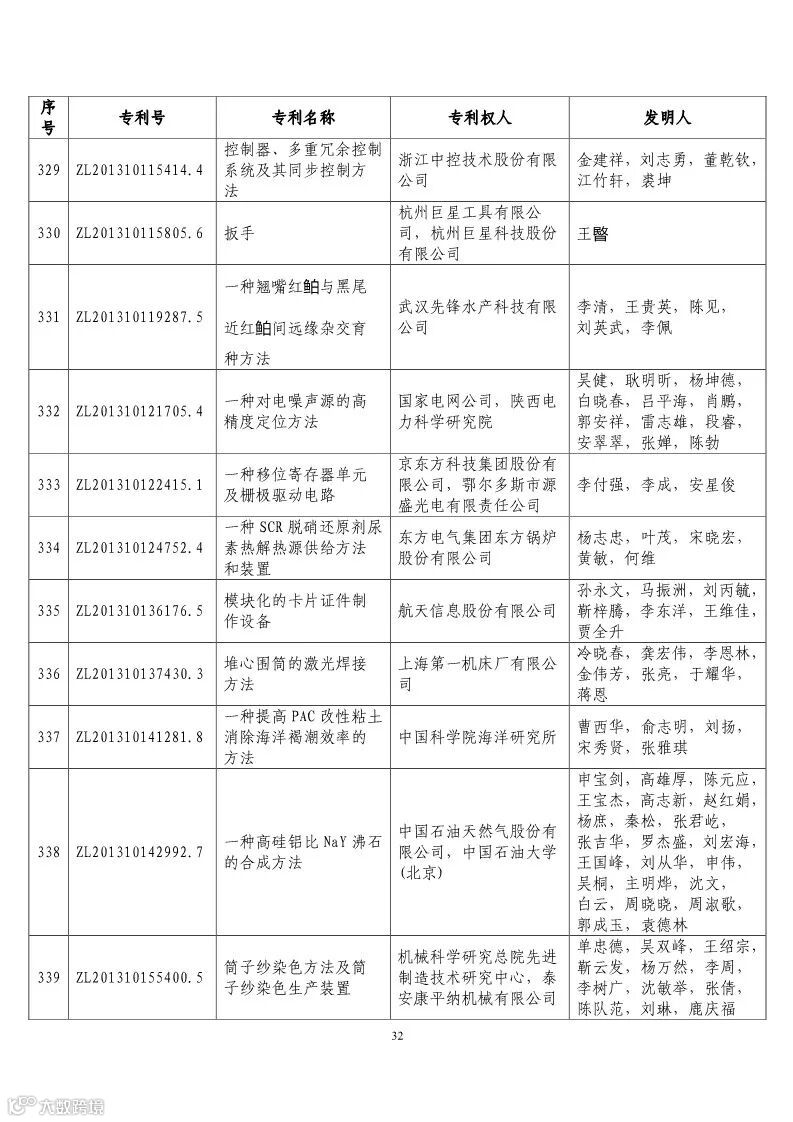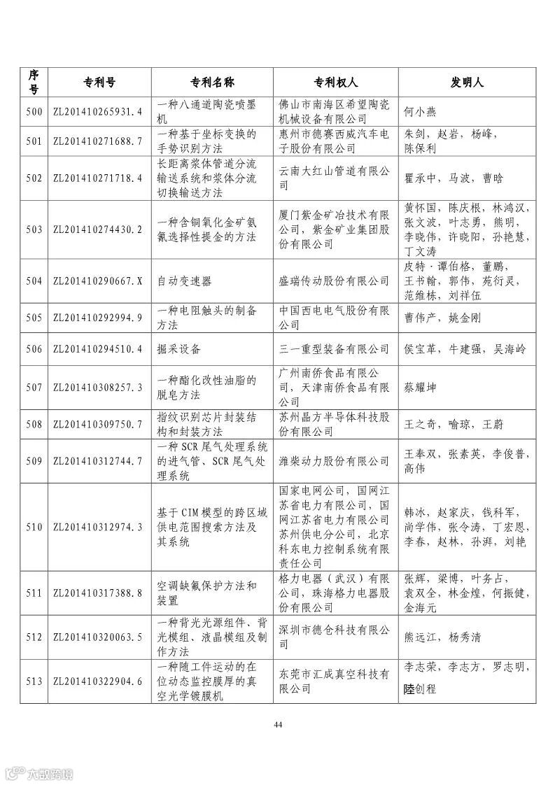 第二十届中国专利奖共评选出中国专利金奖预获奖项目30项,中国外观设计金奖预获奖项目10项,中国专利银奖预获奖项目60项,中国外观设计银奖预获奖项目15项,中国专利优秀奖预获奖项目698项,中国外观设计优秀奖预获奖项目61项,现予以公示,公示期为2018年11月23日至11月29日。
