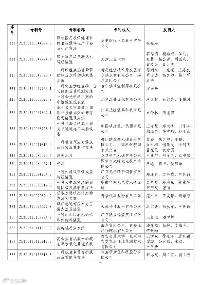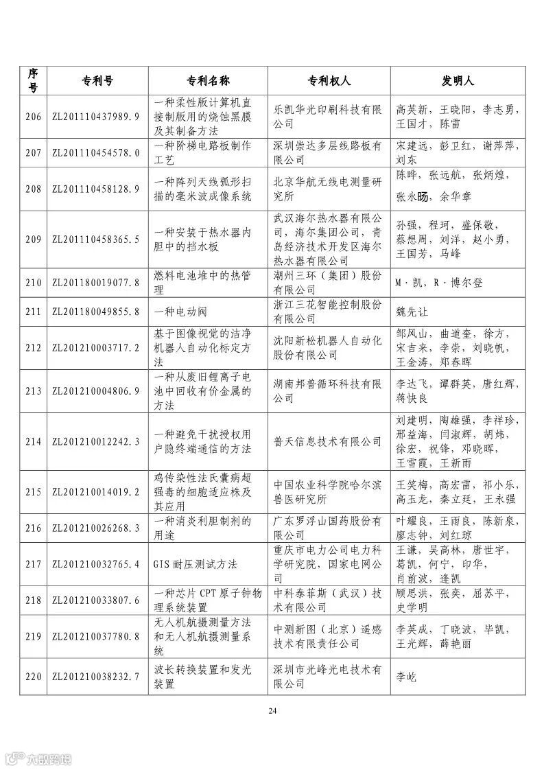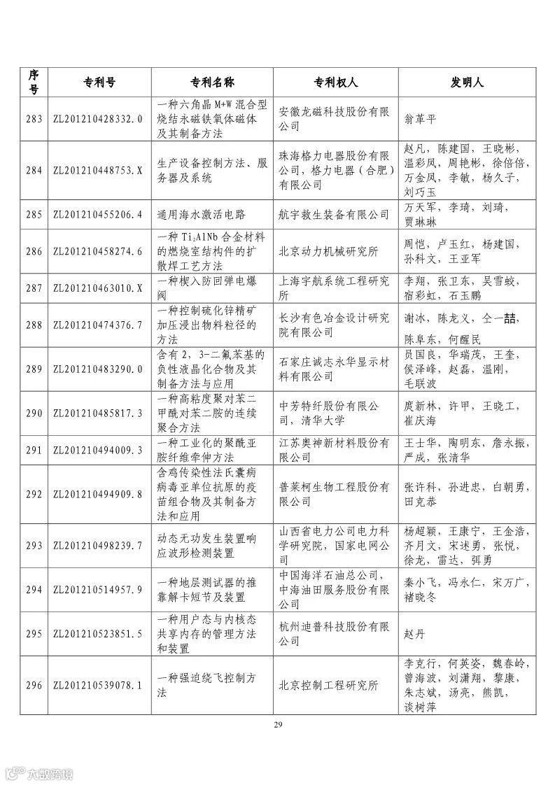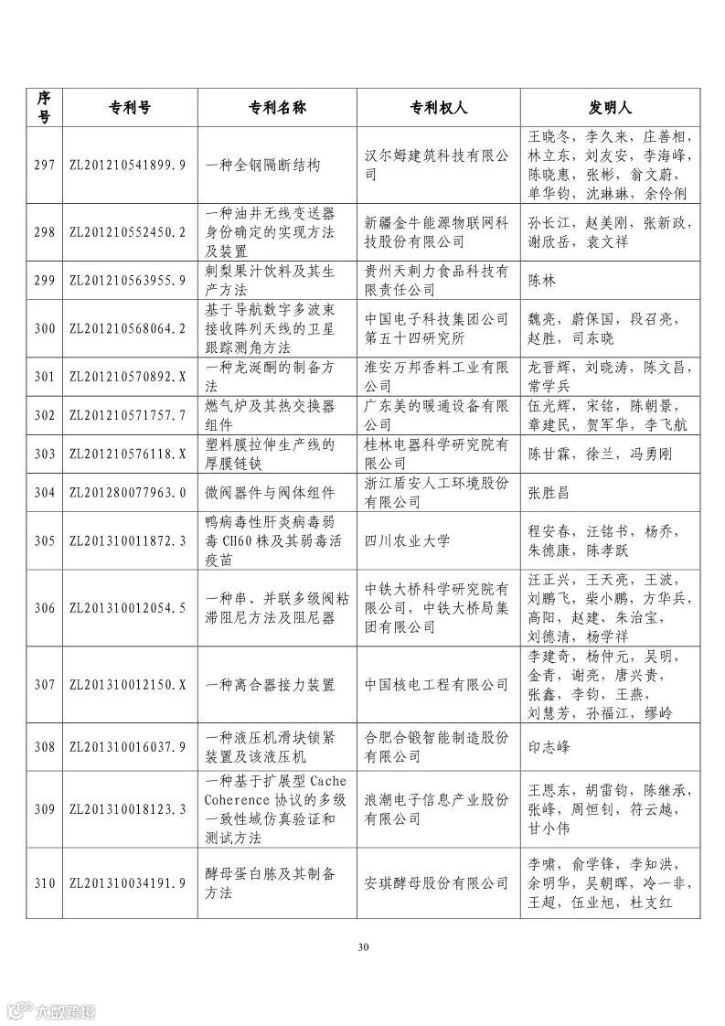 (一)第二十届中国专利金奖预获奖项目(30 项)