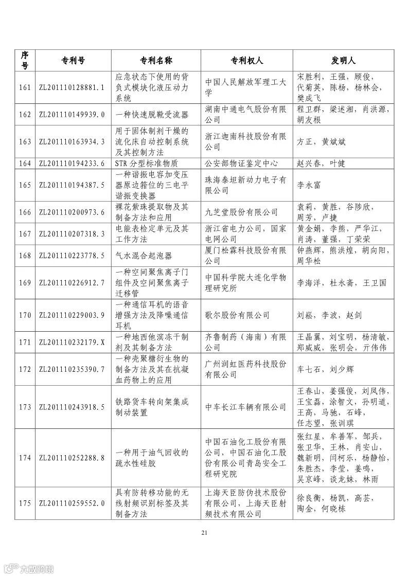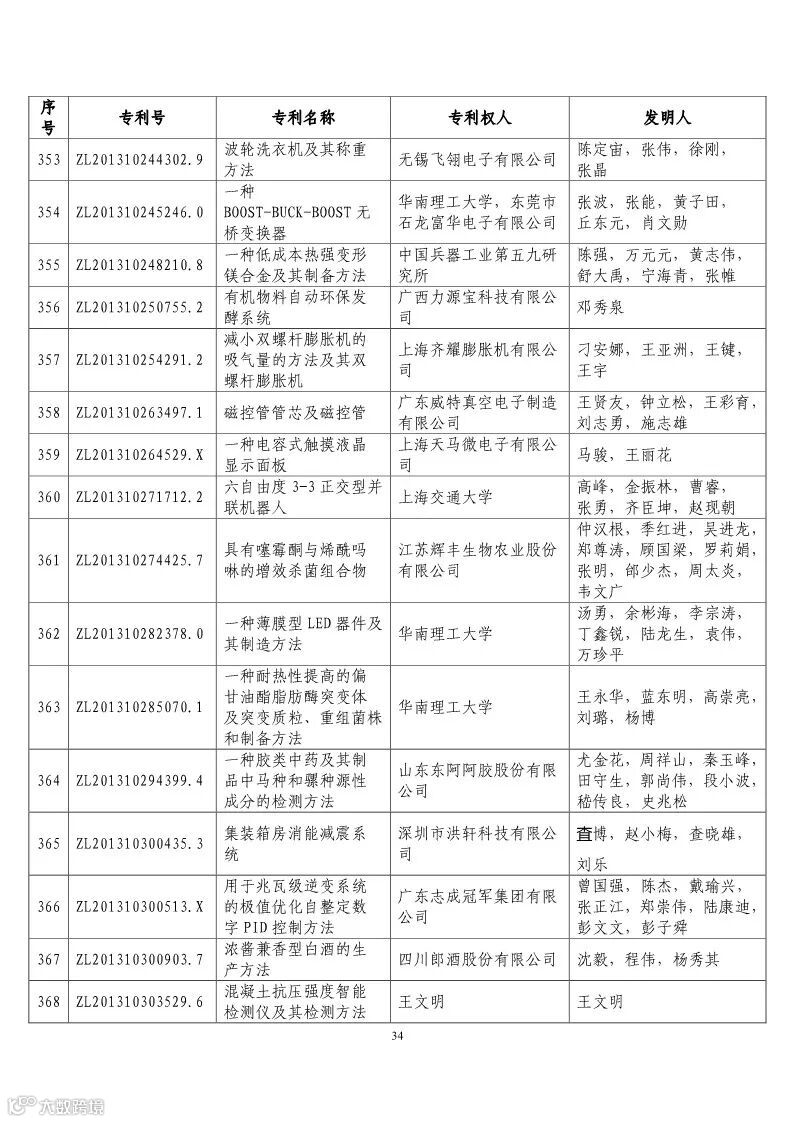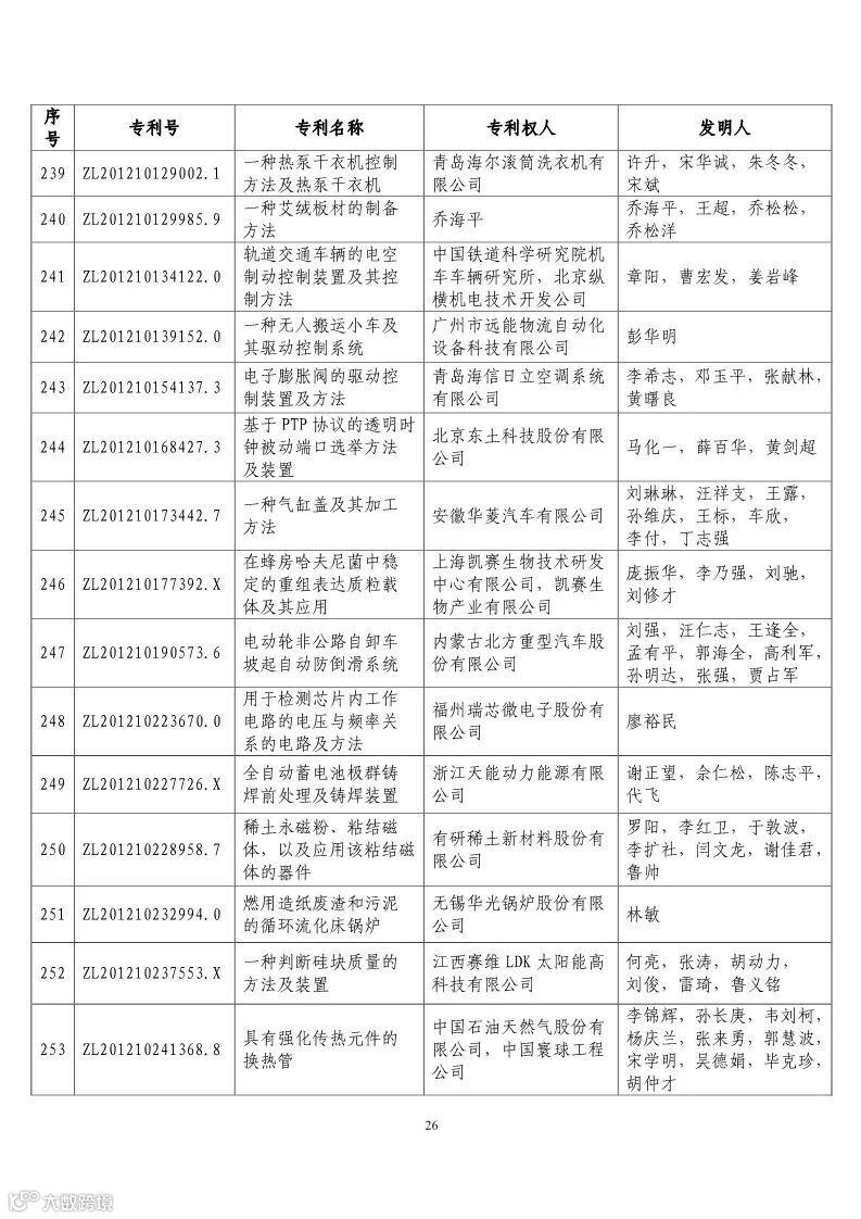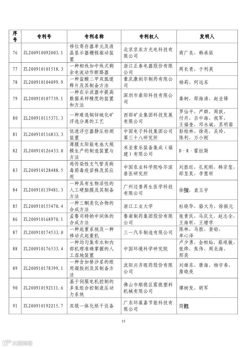(一)第二十届中国专利金奖预获奖项目(30 项)