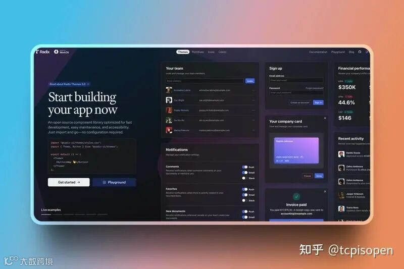 我们应用的 UI 采用Radix UI ,因为它提供了无头、无样式的组件,并自动遵循无障碍最佳实践。这确保了诸如 @mentions 的下拉菜单、通知的模态框和工具提示等元素默认可访问,同时通过 CSS 或实用程序类实现了充分的设计灵活性。