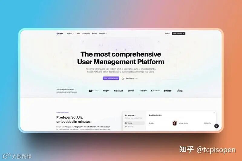 Clerk负责处理我们的身份验证需求。它提供了无缝的身份验证体验,并与 Next.js 完美集成。我们使用它来管理用户会话、配置文件,并保护我们的 API 路由。
