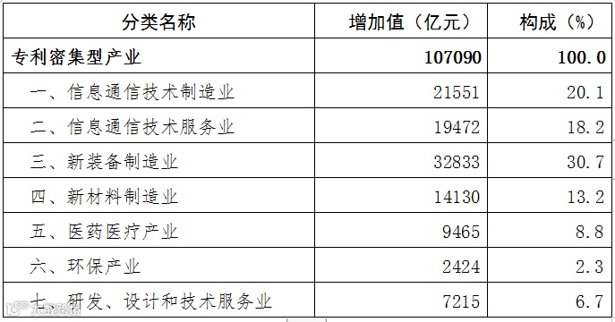 2018年全国专利密集型产业增加值数据公告