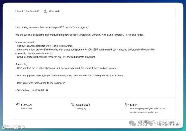 因此,我从 UpWork 聘请了一名自由职业者来访问新闻网站、购买反向链接并撰写许多文章。
