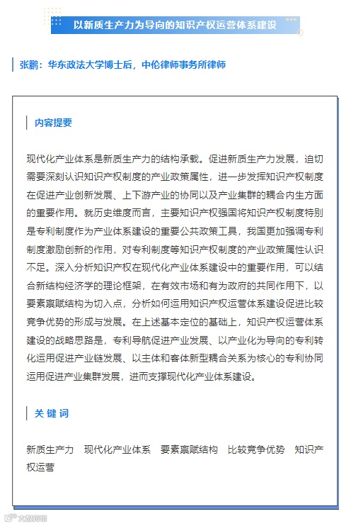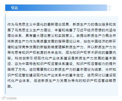 以新质生产力为导向的知识产权运营体系建设