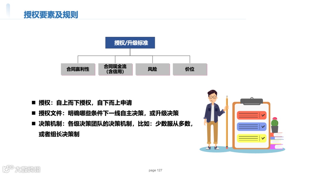 管理授权与行权:销售授权体系(如区域总监可审批≤500万美元合同);