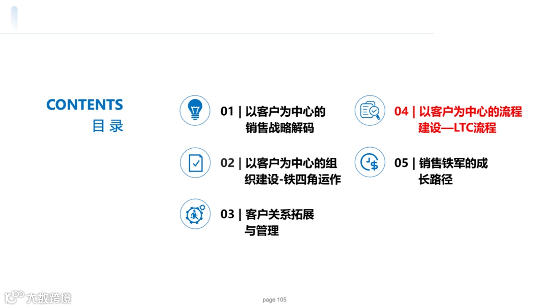 涉及客户关系拓展与管理,介绍客户关系定义、典型问题、管理价值与架构,以及关键客户、普遍客户、组织客户关系的管理方法。此外,讲述以客户为中心的流程建设 LTC 流程,包括流程架构、主要流程、评审与决策等。最后提及销售铁军的成长路径,涵盖成长模型、转型要点、成功秘诀等内容,凸显华为以客户为中心的销售体系构建与实践。