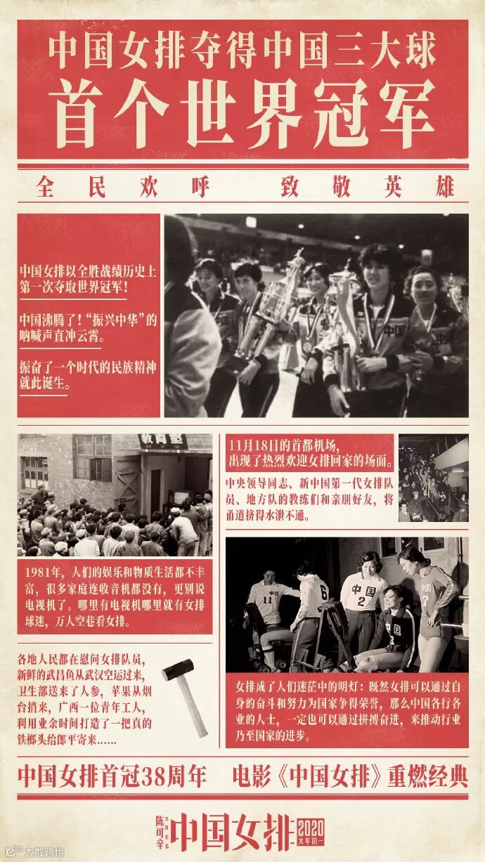 而由陳可辛執導的《中國女排》電影即將在今年大年初一上映,影片講述幾代中國女排的奮鬥歷程以及她們頑強拼搏、為國爭光的感人故事,女排精神再次引發熱議。