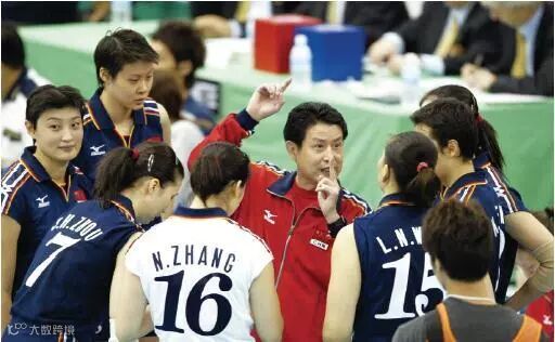 2003年11月3日,在日本鹿兒島舉行的第九屆女排世界杯賽第三場比賽中,中國隊以3比0戰勝多米尼加隊,取得三連勝。圖為主教練陳忠和為隊員講解戰術。
