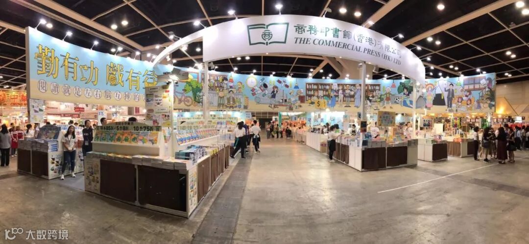 香港商務印書館攤位設計與往年相若,展牌上可見今年主題「勤有功 戲有益」。