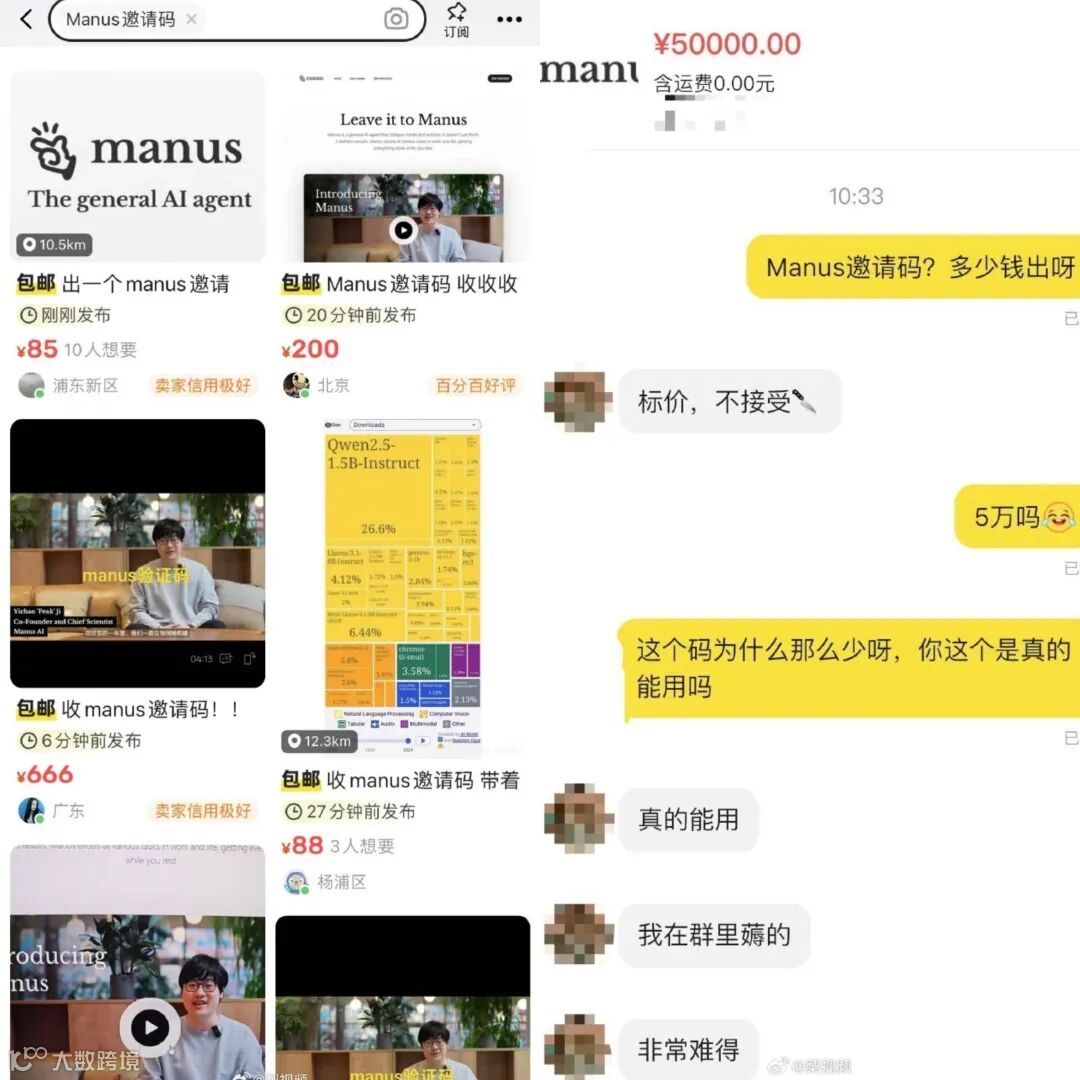 目前试用需要输入邀请码,但Manus的邀请码更是一码难求。在二手交易平台上,不少网友都在求购邀请码,但出售的卖家寥寥无几。邀请码标价999元至5万元不等,有开价5万元的卖家表示不接受砍价,“现在就是这个行情价,数量太少了,非常难得。”