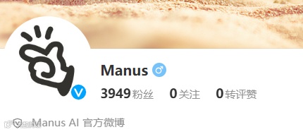 据第一财经日报称,@Manus官方微博上线,并获得蓝V认证。