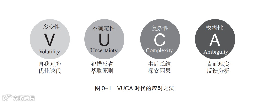 这个时代被人们贴上了“VUCA”的标签:V 代表 Volatility, 指 现 状 多 变;U 代 表 Uncertainty,指变化不确定;C 代表 Complexity,指作用机制复杂;A 代表 Ambiguity,指因果关系模糊。我们就像在茫茫大海中驾驶着一艘小船,海面时而风平浪静,时而惊涛骇浪,船只在海浪的助推下起伏,却又不知前路该去往何方。