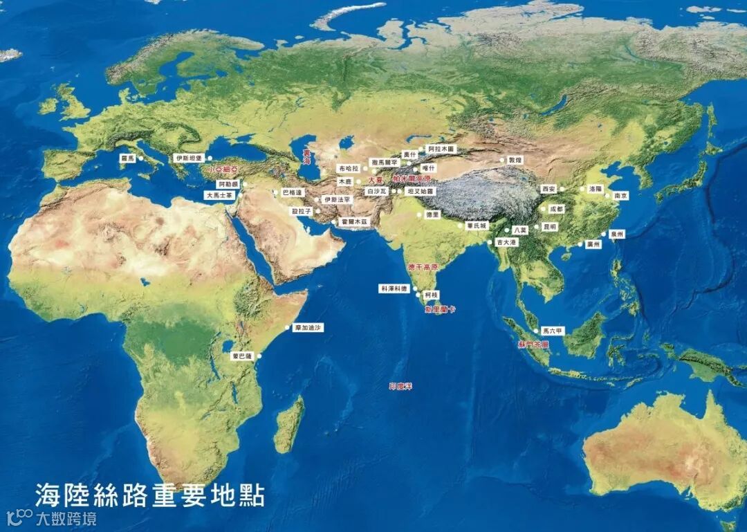 「絲綢之路」一名由德國地理學家李希霍芬於1877年提出,指的是東起長安、西連歐洲的商路。陸上絲路或經北方草原西行,或由長安、洛陽出河西,通往大小西域;海上絲路則由中國東南沿海南下馬六甲海峽,西去印度洋。絲路上遍佈多個古國,有的依然繁盛(如中國西安、哈薩克斯坦阿拉木圖),有的卻已無跡可尋(如土庫曼斯坦木鹿遺址)。