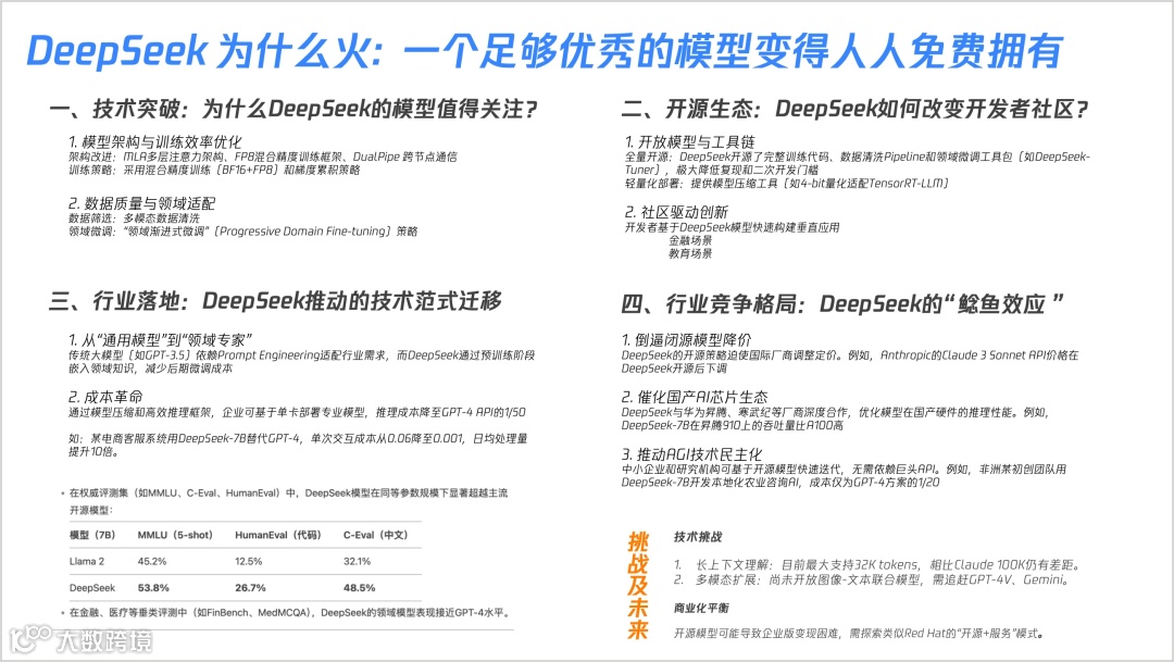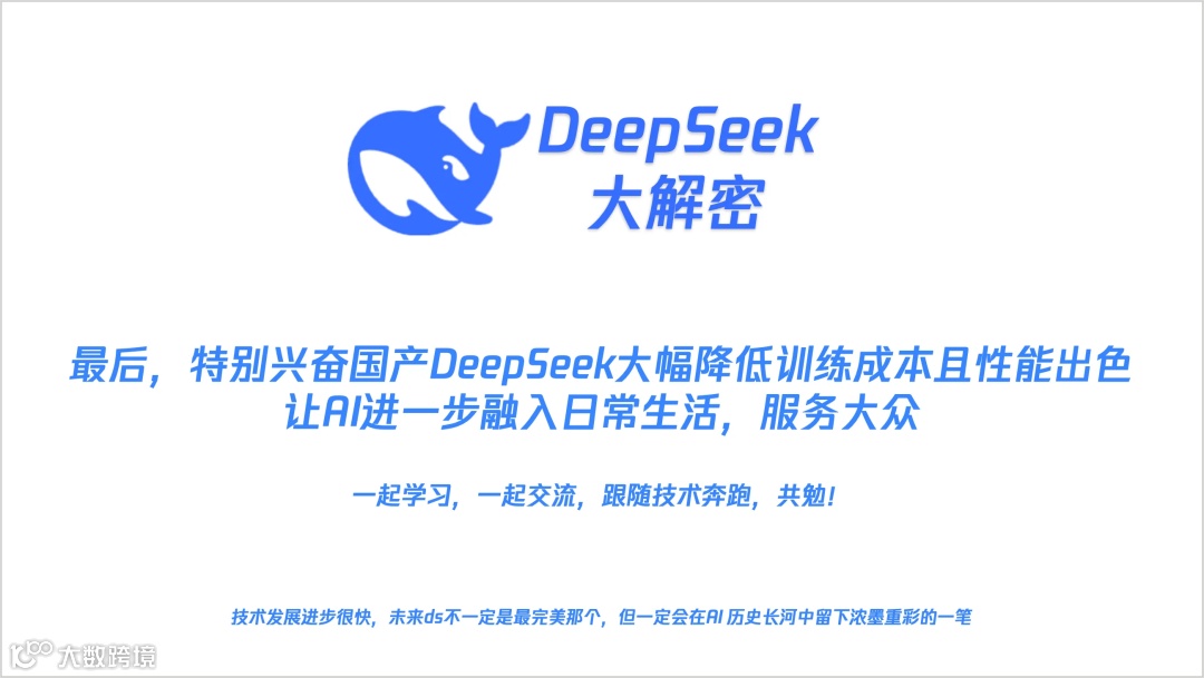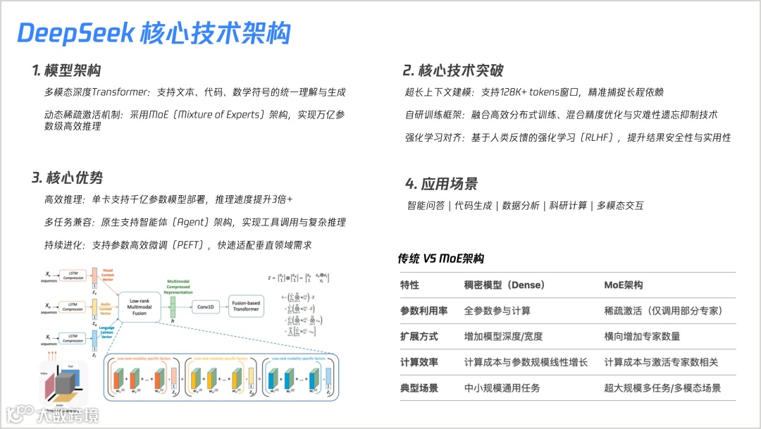 本文内容由腾讯工程师 Tommie 制作,以PPT式风格直观呈现了DeepSeek的核心技术,详细剖析了DeepSeek不同版本的技术亮点和发展历程,目的在于帮助技术爱好者、专业人士和从业者更好地理解和使用DeepSeek,同时启发人工智能创新发展的思考与探索。