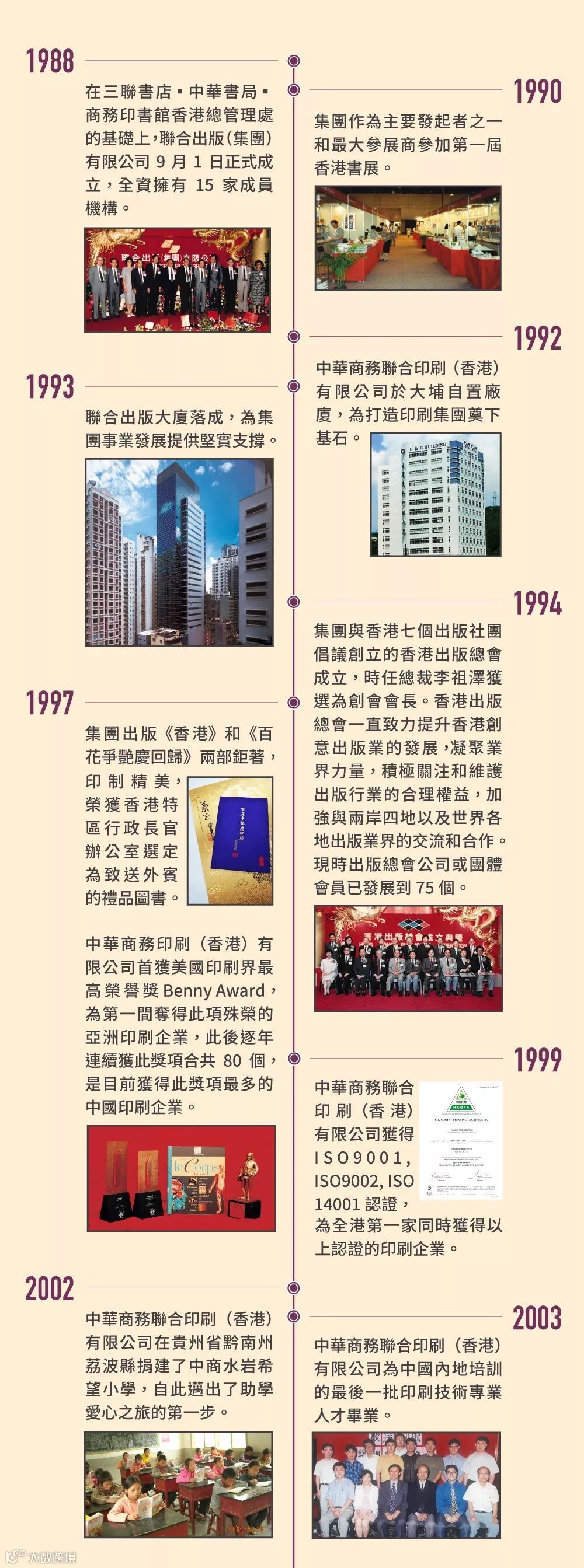 聯合出版集團1988年在香港三聯書店、中華書局、商務印書館等知名出版機構基礎上組建而成,服務香港逾百年,現已發展成為香港最具規模的綜合性出版傳媒集團。集團總部在中國香港,中國內地和港澳台地區,美、加、新、馬、印、越等地有子公司和分支機構。