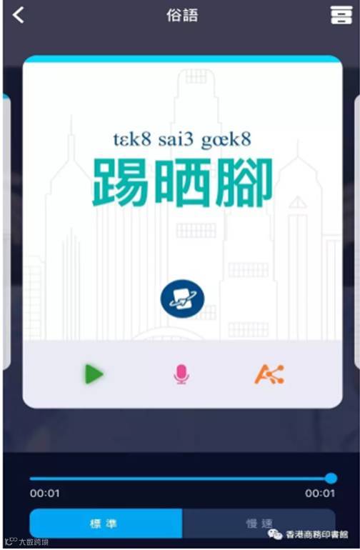 ☑ 對照真人粵語發音,提供錄音功能以記錄自己的讀音並播放;