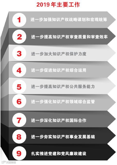 近日,申长雨在2019年全国知识产权局局长会议上对2018年知识产权主要工作进展、知识产权事业发展经验进行总结,提出2019年主要工作的总体思路。