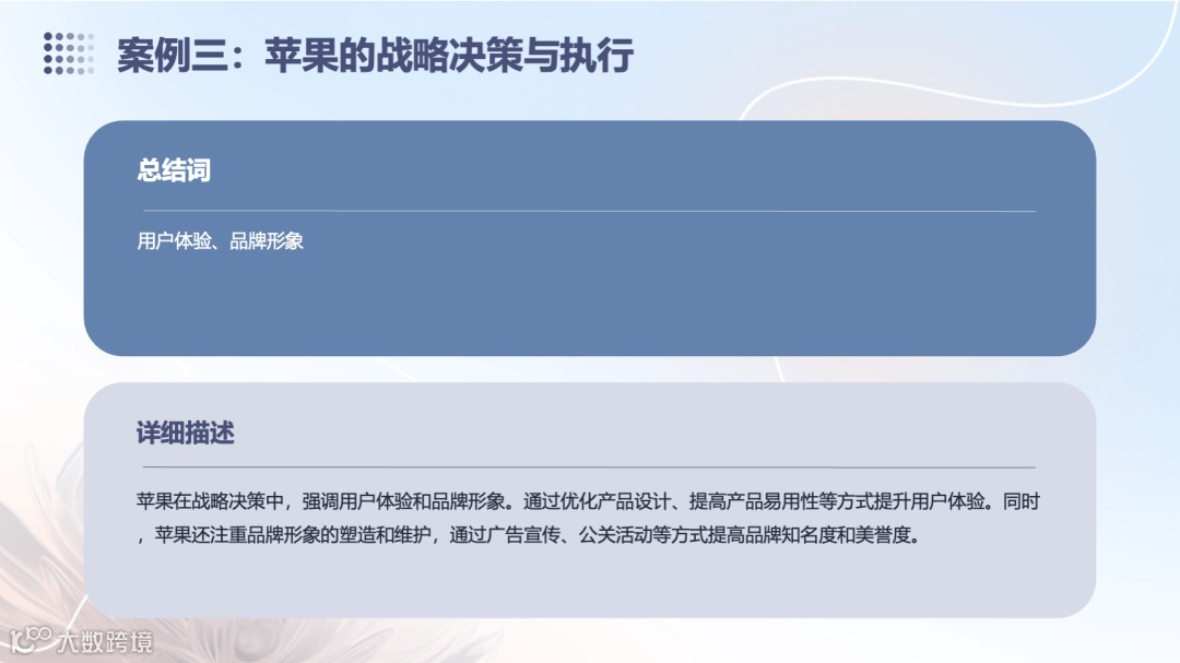 要素:服务对象(如“为中小企业服务”——阿里巴巴)、核心价值(如“用科技让复杂世界更简单”——IBM)、独特能力(如“持续创新”——3M)。