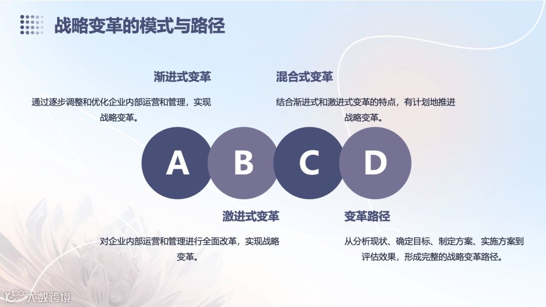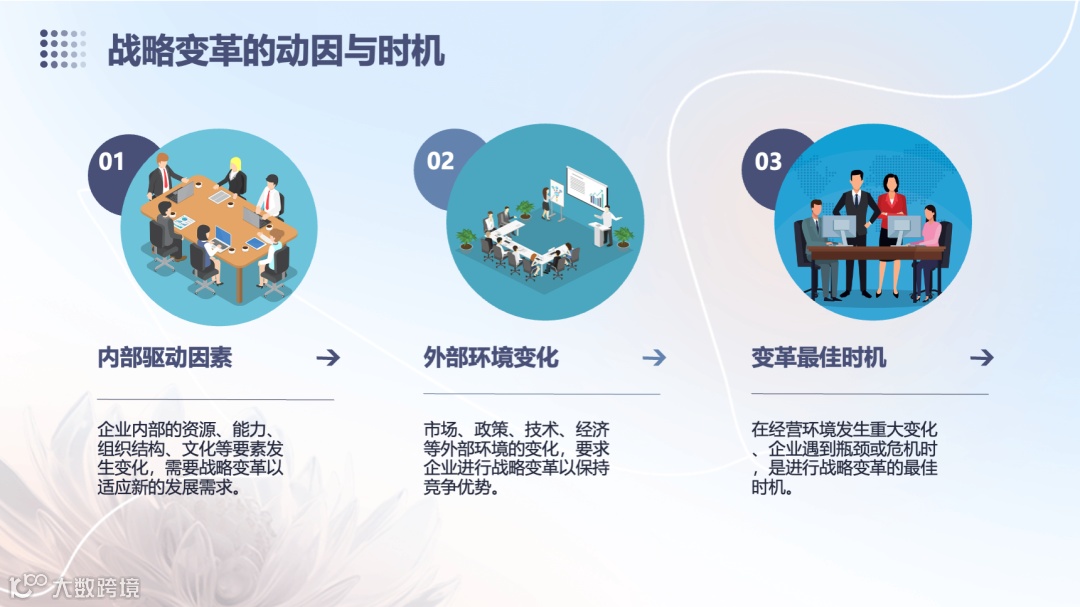 适用场景:环境缓慢变化,需持续优化(如传统车企逐步增加电动车产线,而非彻底停产燃油车)。
