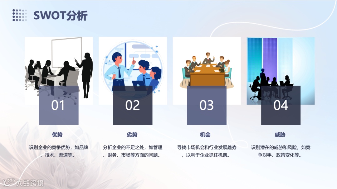 内部审计:通过资源审计(如专利数量)、能力评估(如研发效率)识别优势(S)与劣势(W)。