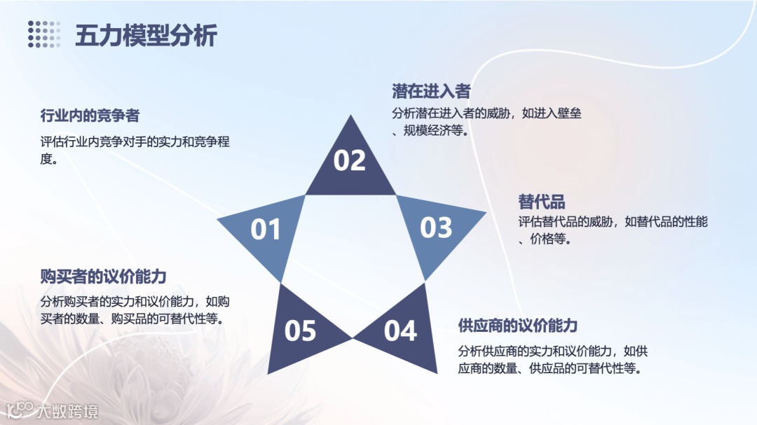 外部扫描:结合PEST与五力模型识别机会(O)与威胁(T)。