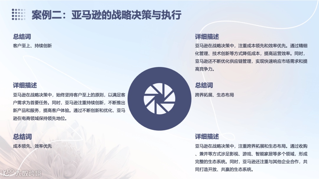 并购策略:收购Whole Foods布局线下零售,收购Ring进入智能家居,构建“线上+线下+硬件+服务”闭环。
