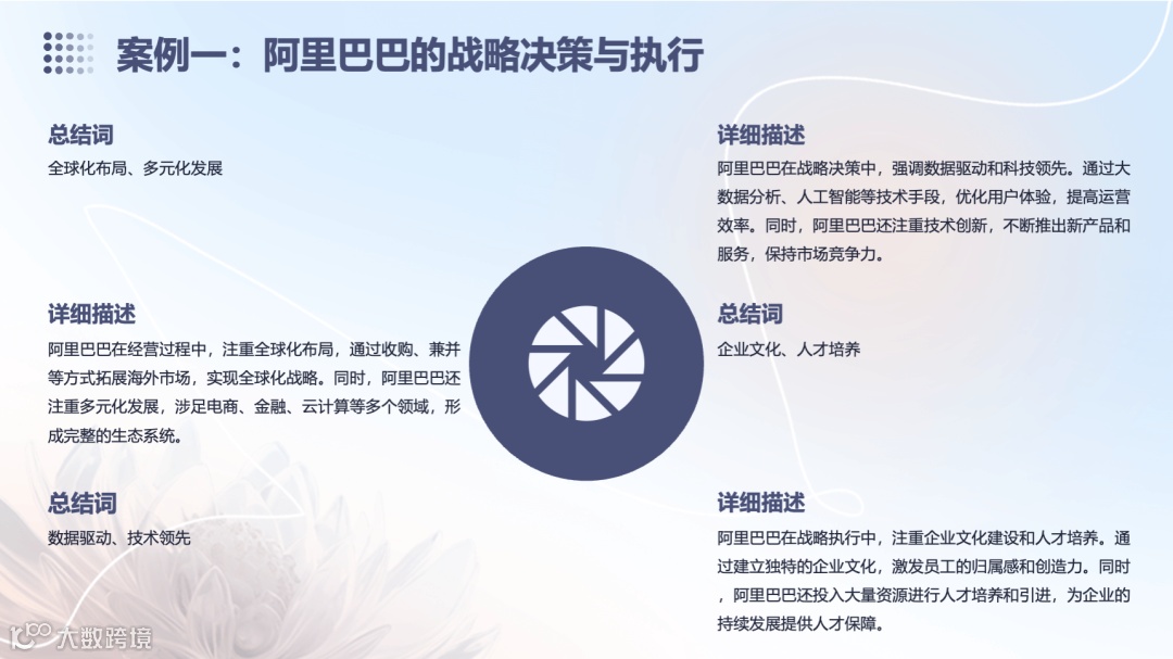 人才培养:湖畔学院培养“阿里人”,强调“客户第一、团队合作”,降低变革阻力。
