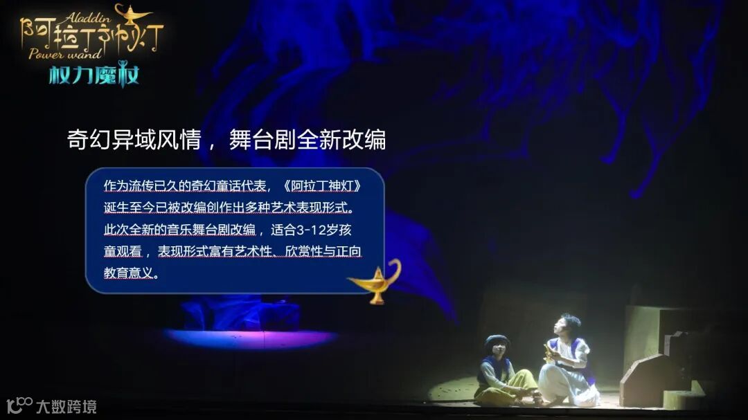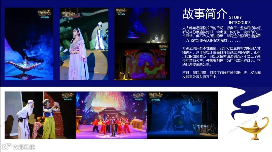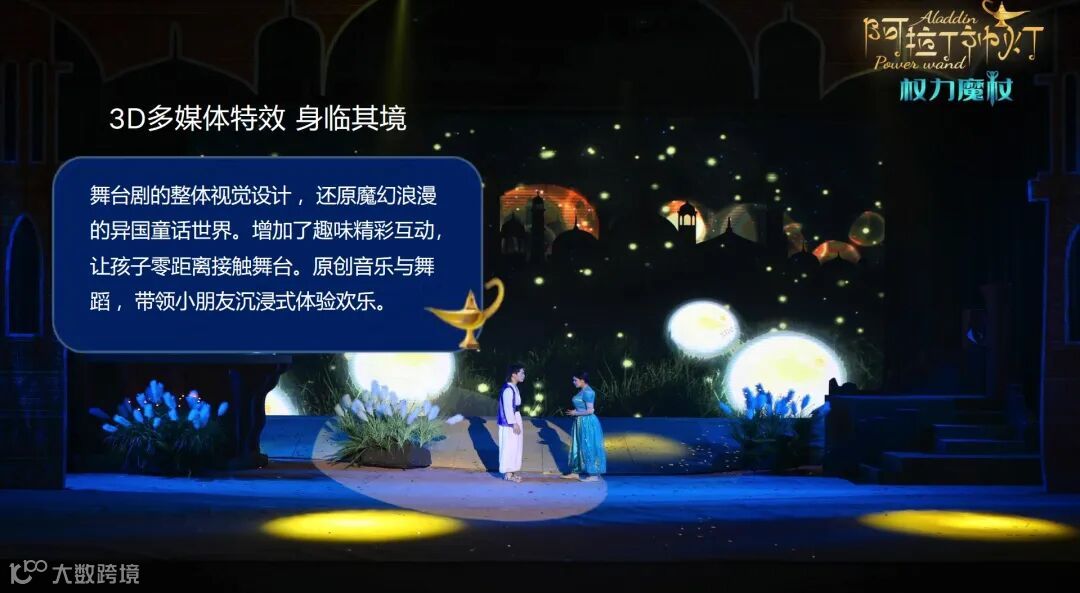 《阿拉丁神灯·权力魔杖》是一部专为亲子家庭倾力打造的大型原创3D多媒体儿童音乐舞台剧。该剧以经典童话《阿拉丁神灯》为创作蓝本,巧妙融入"神灯"与"权力魔杖"两大魔法秘宝的奇幻设定,通过跌宕起伏的冒险故事,生动诠释了勇气、善良与正义终将战胜贪婪的永恒主题。其独特的艺术表现形式兼具视觉震撼力与审美价值,在带给观众视听享受的同时,更传递出积极向上的教育意义。