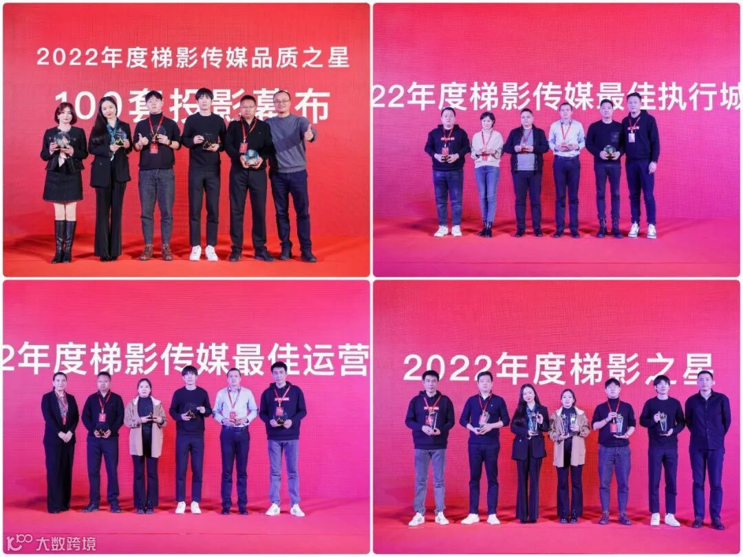 当天的颁奖环节将气氛推入顶点,现场颁布了梯影传媒2022年度品质之星城市、年度最佳运营城市、年度最佳执行城市及年度梯影之星个人奖项,在全体嘉宾的见证下,梯影高层与快刀何亲启奖项信封,宣布荣誉归属。